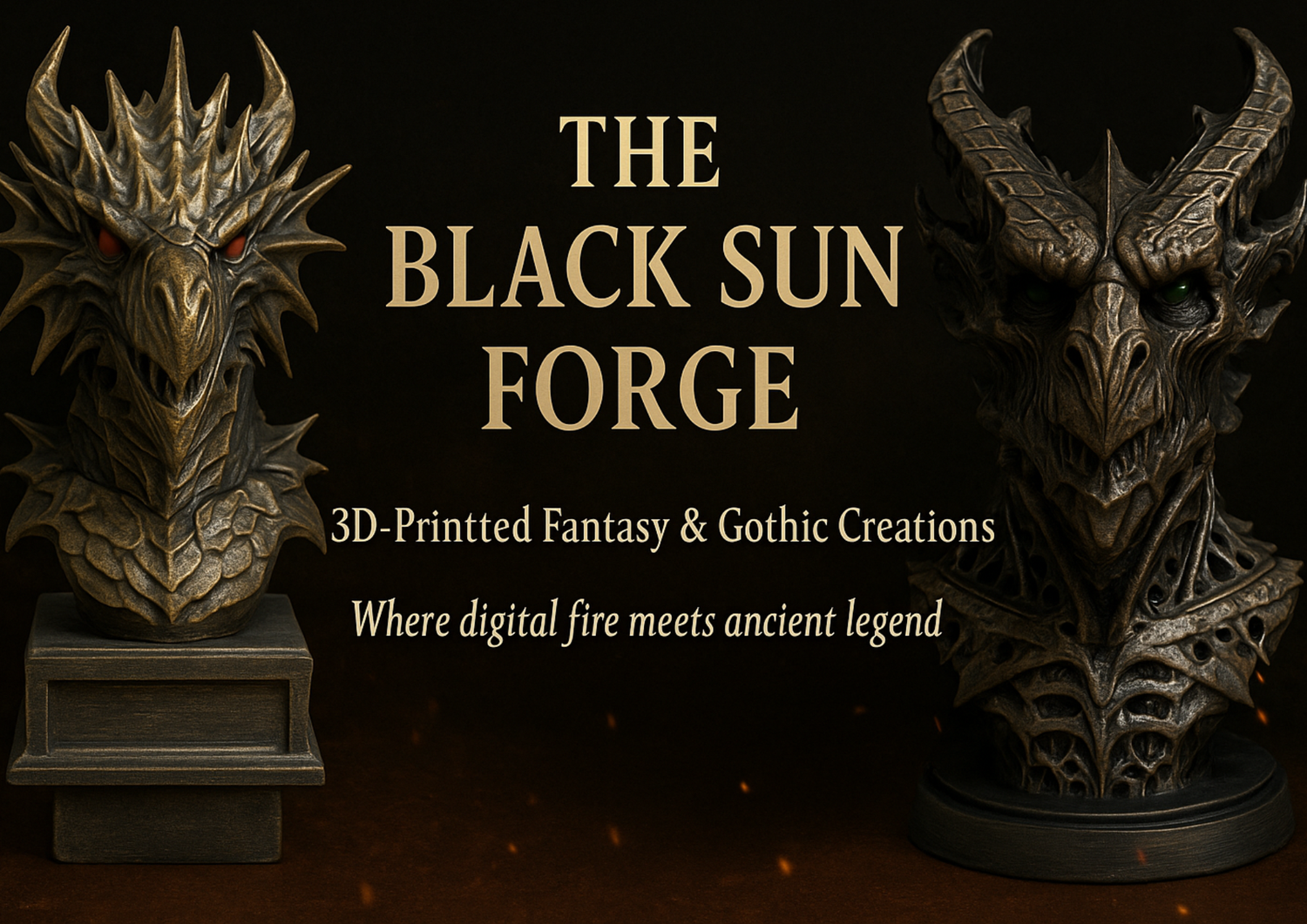 The Black Sun Forge – 3D-printed fantasy art and gothic creations, handcrafted and born from flame.